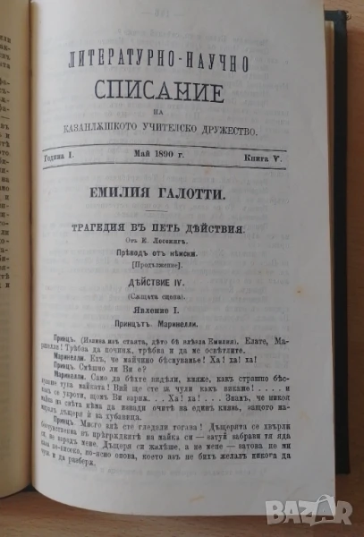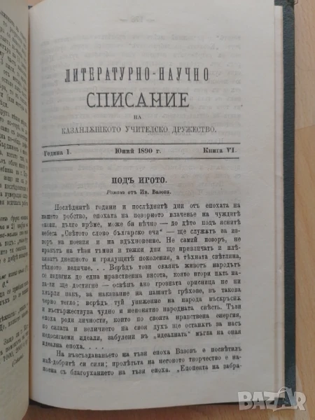 Литературно-научно списание на Казанлъшкото учителско дружество - редактор д-р Кръстьо К. Кръстев. Пет броя на списанието подвързани като книга в отлично състояние. Томът е от личната библиотека на Димитро Папазоглу ( видно от снимките).