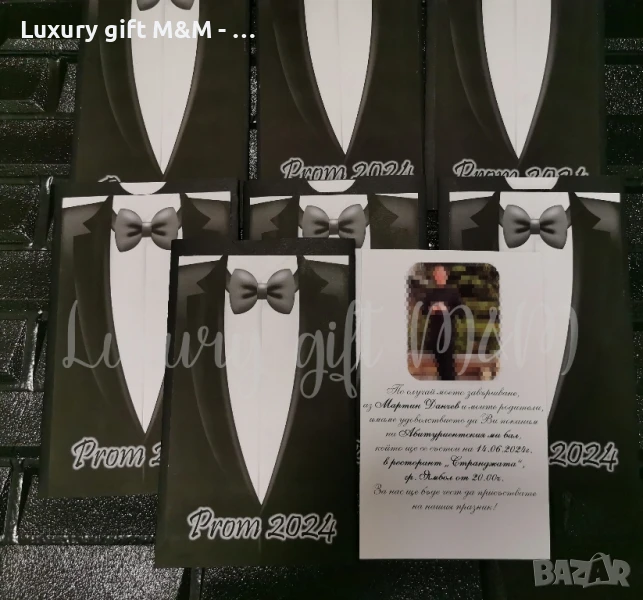 Покана за Абитуриентски бал "Костюм" със снимка