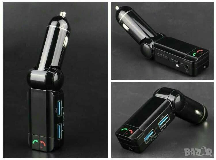 Блутут за кола (MP3player FM предавател зарядно USB и Bluetooth) / Материал на корпуса: метал, ABS Размери и тегло: 115/25/18 милиметра, 58 грама Специални функции: предавател за FM; MP3 player; USB; Bluetooth, запалка за кола / Съвместима марка коли: всички марки, универсално Външно напрежение: 12V/2A Изход за USB: 5V/2,1A Формат на файловете: MP3; SNR-60dB Честота на предаването: 20Hz – 15KHz Модел FM честота: дигитално стерео PPL, 87,5-108MHz Параметри Bluetooth: 2,1EDR, A2DP аудио предаване, дистанция 10 метра (до 2 метра за микрофона)15лв