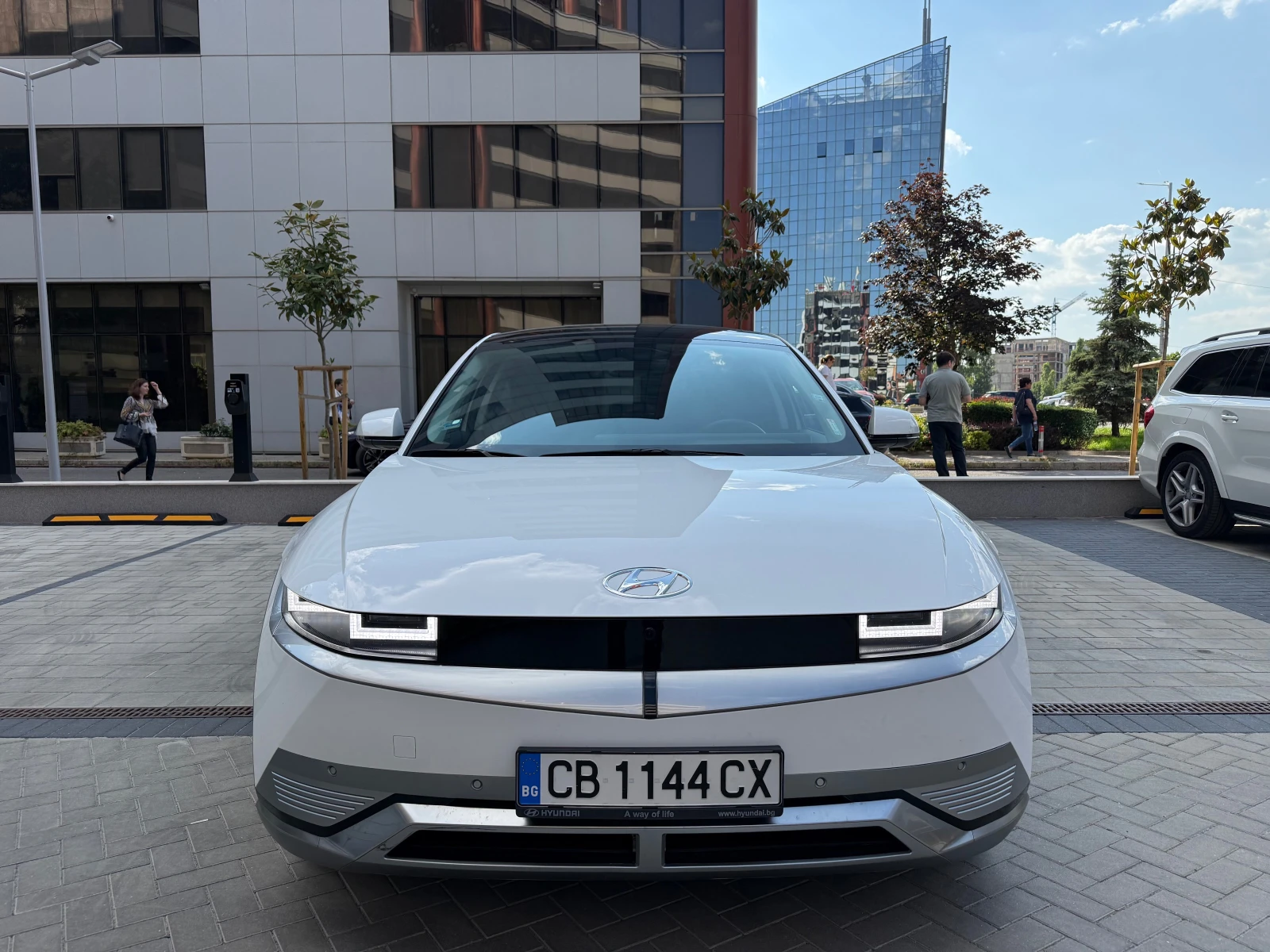 Първи собственик, автомобилът е закупен и обслужван от Хюндай в България. Гаранция от Хюндай България до Октомври 2026 г. В перфектно техническо и визуално състояние. ___________________________________ Възможност да се продължи текущ лизинг. ___________________________________ Екстериор Бял Металик Интериор Седалки Черна перфорирана кожа Адаптивни LED фарове 20" алуминиеви джанти HeadUp дисплей BOSE премиум аудио система Камери 360 Асистент за паркиране Асистент за аварийно спиране Адаптивен круиз контрол и следене на лента Асистент за мъртва зона Комфортни електрически седалки с памет Предни седалки с отопление и охлаждане Задни седалки с отопление Волан с отопление Слънцезащитни и затъмнени задни стъла Ел. задвижване на багажната врата Безключов достъп ___________________________________ 800V архитектура позволяваща 220квт бързо DC зареждане, със средна скорост на зареждане 185квт, 17мин от 10% до 80%, или допълнителен пробег от 260-280км за 17мин; презатопляне на батерията преди достигане на бърза зарядна станция; 11квт трифазно бордово зарядно за АС зарядни.