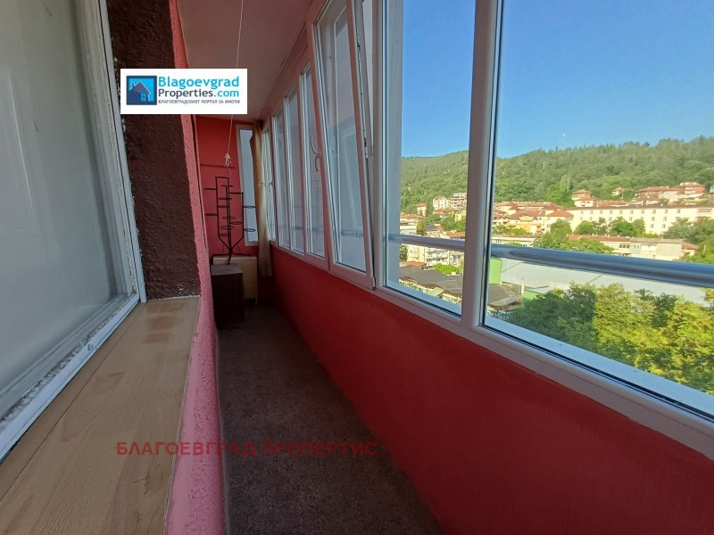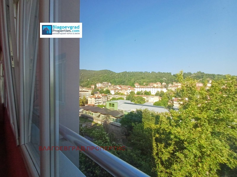 Предлагаме за продажба, слънчев апартамент, с невероятна гледка към реката, на метри от пешеходната улица на град Благоевград, Кооперативен пазар, кампуса на АУБГ. Жилището се състои от коридор, кухня с трапезария, хол, две спални, тоалетна, баня с тоалетна, голяма тераса, с югозападно изложение. Жилището е със сменена ПВЦ дограма и външна изолация, запазен паркет. Разполага и с мазе от 7кв.м.. Блокът е саниран, с голям товарен асансьор.