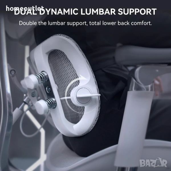 Динамичната лумбална опора осигурява комфорт по време на продължителни периоди на седене, предотвратявайки умората.