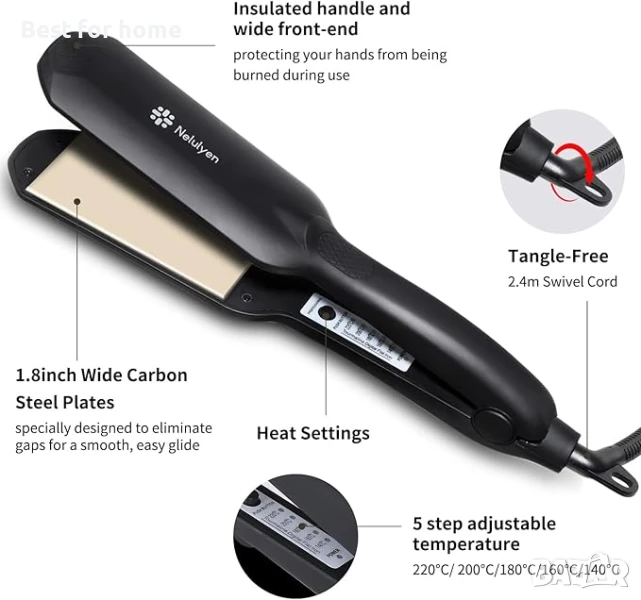 ПРОФЕСИОНАЛЕН КОЖАР: Пресата за коса Nelulyen е идеална за всякакъв вид стилизиране на коса, отлична за груба, къдрава и вълниста гъста коса. А 3D плаващите плочи никога не дърпат косата ви.