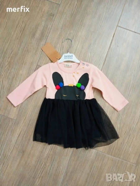 Продавам нови бебешки роклички, за малки момиченца на различни размери, жълтата - 92, светло розовата със сърце - 80/86 р-р, тъмно розовата - 92 р-р, рокля с дълъг ръкав зайче - 80/86 размери.