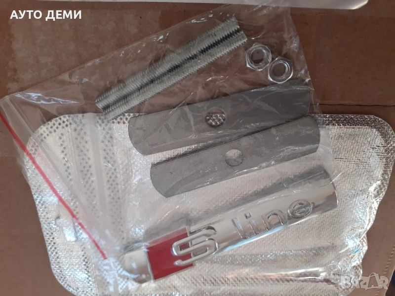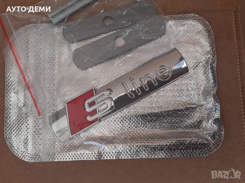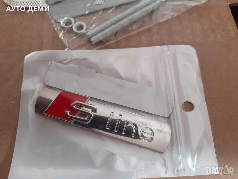 За по- голям размер емблема S line с ъс шпилки , шайби и гайки за монтаж на предна решетка - 20 лв.