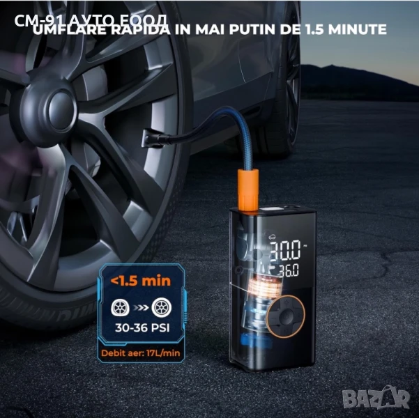 2 пъти по-бързо и компактно надуване: С тегло под 1 кг, този преносим компресор е лесен за транспортиране и съхранение в малки пространства, като коли, багажници за велосипеди или раници. С максимално налягане от 150 PSI и скорост на въздушния поток от 17L/min, той предлага 2 пъти по-бързо надуване. Надува гума 195/65R15 от 30 до 36 PSI само за 1,5 минути.