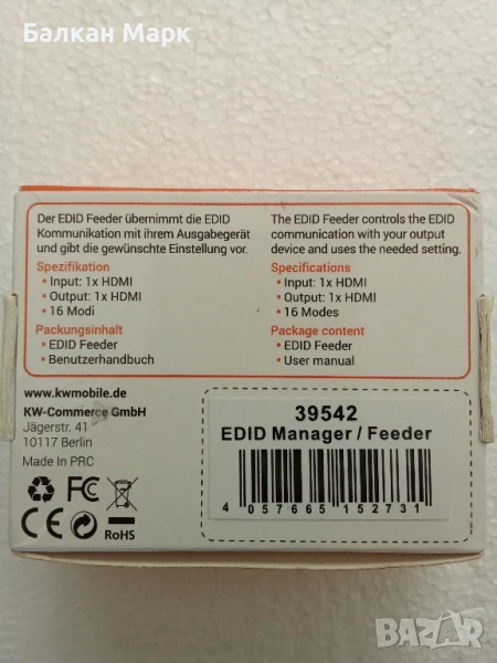 Продавам EDID Feeder / Емулатор / HDMI адаптер kwmobile → Обява 50700550
