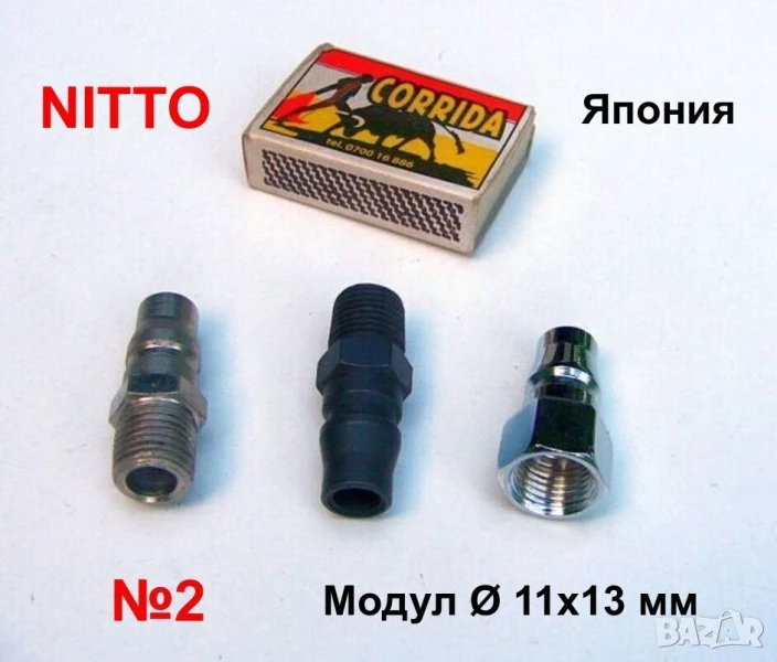 №2: NITTO - Япония; Модул: Ø1(чело)=11мм; Ø2 / Ø3=13мм (вижте схема и снимки); Резба: G1/4”-19 BSP; 3 бр.(продават се заедно);