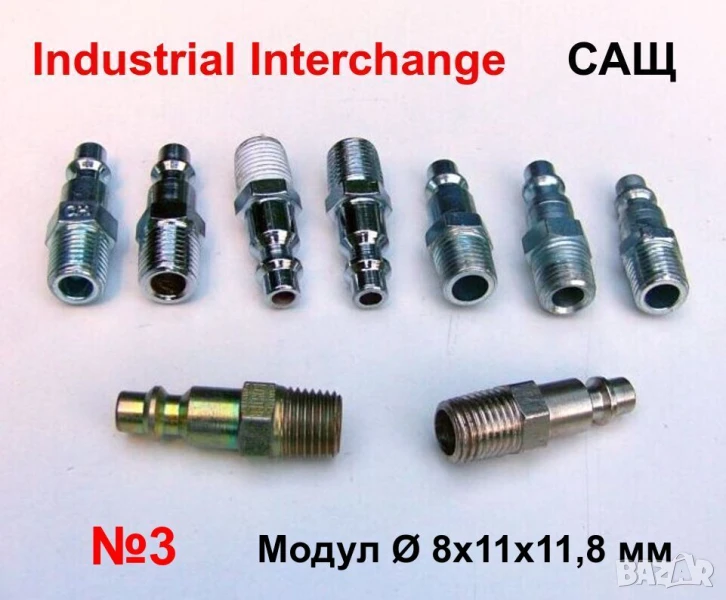 №3: Industrial Interchange - САЩ; Модул: Ø1(чело)=8мм; Ø2=11мм; Ø3=11,80мм (вижте схема и снимки); Резба: К1/4”-18; 9 бр.;