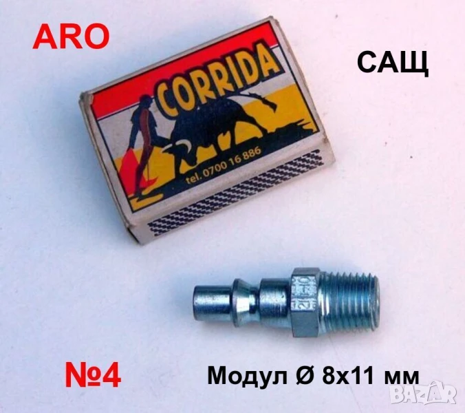 №4: ARO - САЩ; Модул: Ø1(чело)=8мм; Ø2 / Ø3=11мм (вижте схема и снимки); Резба: К1/4”-18; 1бр.;