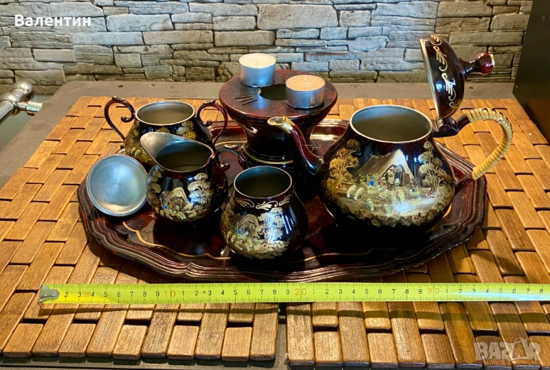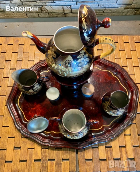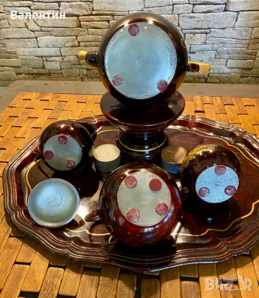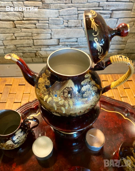 Комплект за чаено парти се продава като отделен артикул или като част от комплект. Не забравяйте да разгледате и други артикули от този комплект - #0004# Старинна бульотка и #0015# Електрическа лампа. Заедно всички тези артикули съставляват една много солидна, красива композиция.