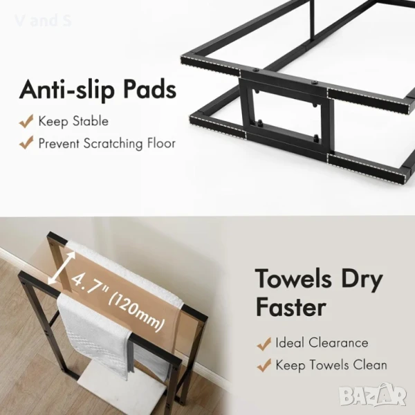 [Висококачествен материал и покритие - здраво и издръжливо] Стойката за одеяла е изработена от здрав, дебел метал с висококачествено прахово покритие, което гарантира издръжливост и надеждност за ежедневна употреба без огъване или счупване.