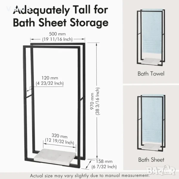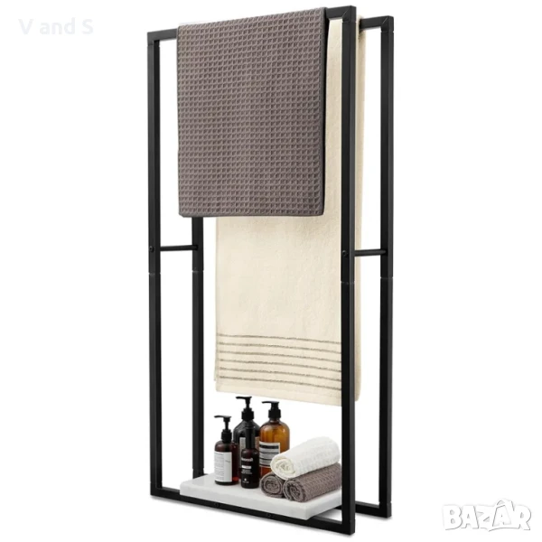 [Мраморна основа - уникално и практично място за съхранение] Основата е изработена от естествен мрамор в различни цветове и шарки, което не само добавя нотка красота към поставката за кърпи за баня, но и служи като практично решение за съхранение на кърпи и тоалетни принадлежности, което я прави ефикасно допълнение към вашата баня.