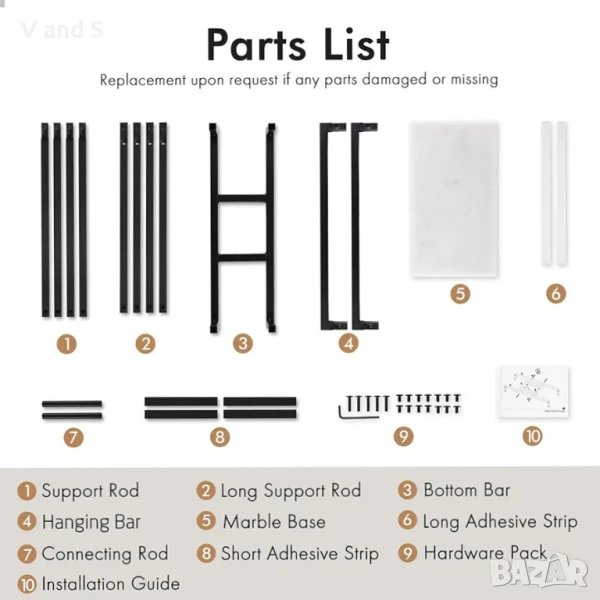 Противоплъзгащи подложки - Защитете пода си] KES предоставя 4 самозалепващи подложки, които се залепват под мраморната основа, предотвратявайки нейното изместване или подхлъзване. Освен това, подплатеното дъно предпазва пода ви от надраскване.
