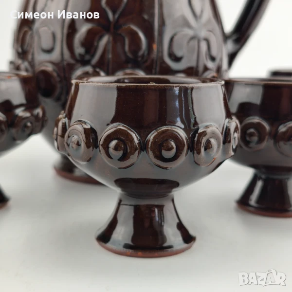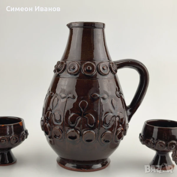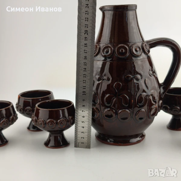 Стар керамичен сервиз за вино 5 чаши и кана #6012