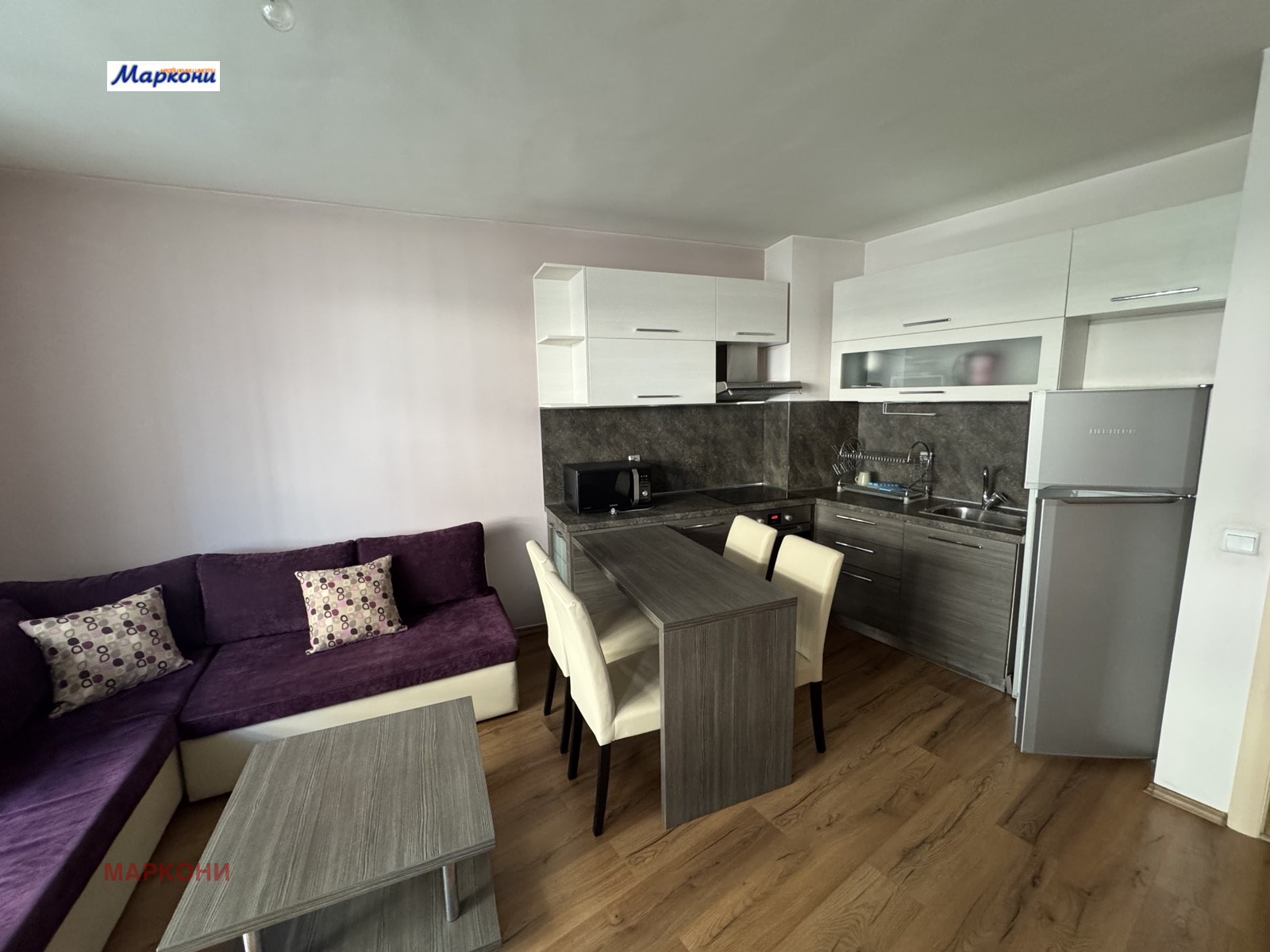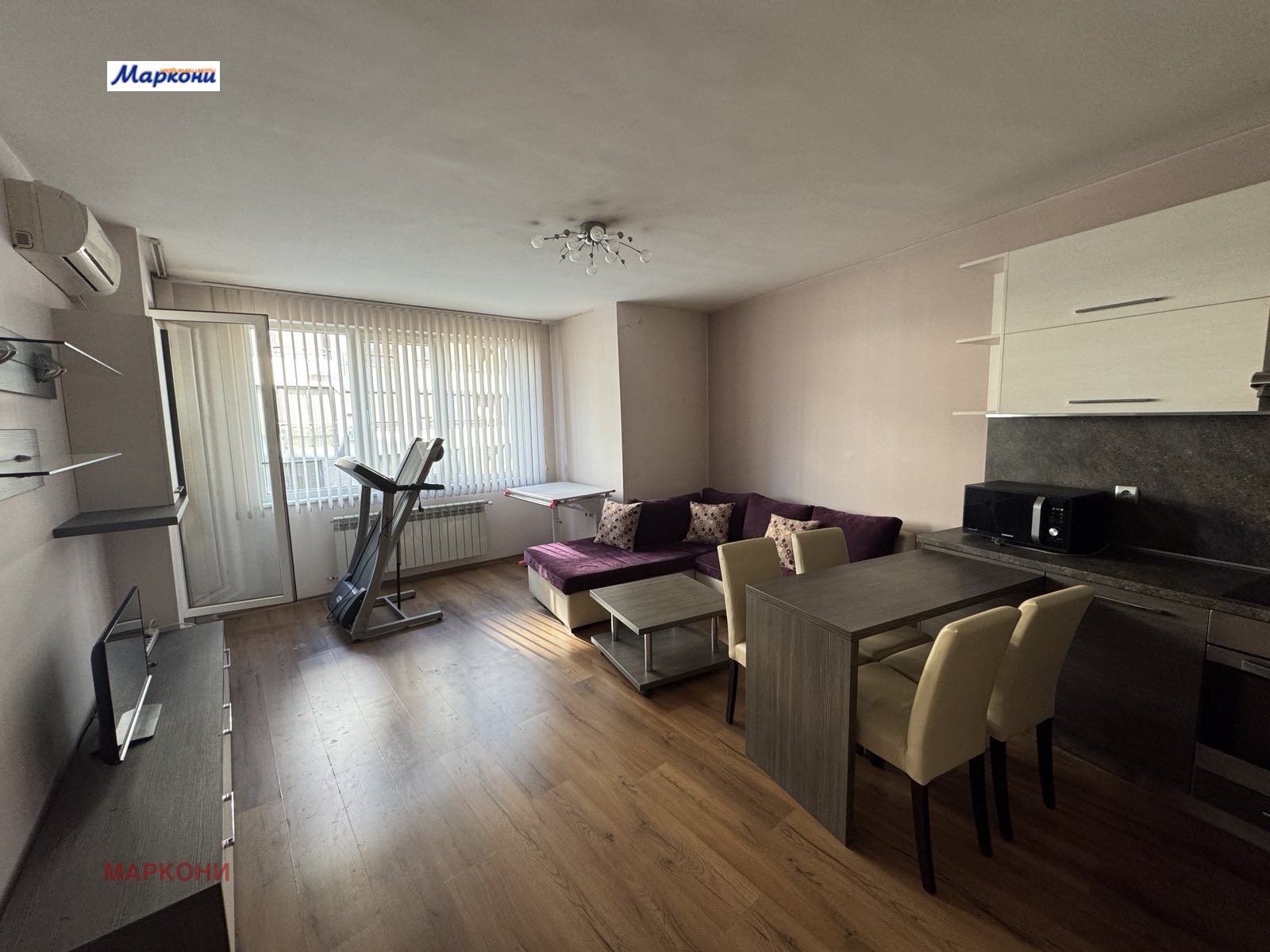 Двустаен апартамент с разпределение: входно антре, дневна с трапезария и кухненски бокс, самостоятелна спалня, балкон, баня с тоалетна. Апартамента е в много добро състояние и се дава под наем напълно обзаведен /обзавеждане и техника - видни на снимките в рекламата/. Добър вход с контролиран достъп, работещи асансьори поддържан от професионален домоуправител. Апартамента е среден, вътрешен и с ниски месечни разходи. Свободен за наемане веднага. Условия за наемане: за Български граждани - един наем и един депозит, за чуждестранни граждани - един наем и два депозита. Домашни любимци в имота не се допускат !!!