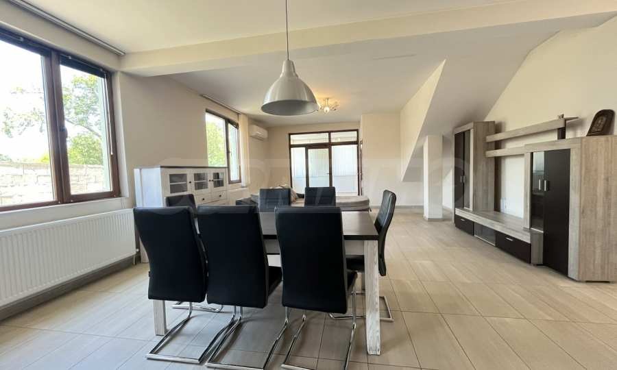 Първият етаж е изцяло оборудван и обзаведен. Състои е от 5 спални, 2 бани, перално помещение, офис, голям коридор, багажно помещение.