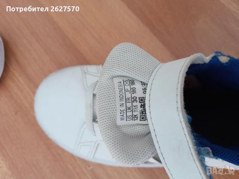 Детски маратонки Адидас.Маратонките са номер 30,дължината на стелката 19,5 см.Забележката се вижда от снимките.