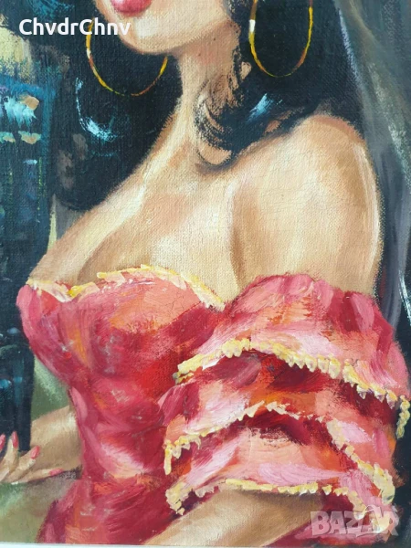 Картината е проверявана от специалист че е ръчно рисувана (не е принт) и е авторска, с подпис на художника (Jose Ramon) показан на една от снимките).