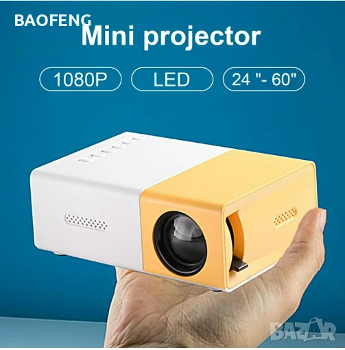 Проекторът може да прожектира изображение с диагонал от 24 до 60 инча при разстояние за прожектиране от 1.5 до 2 метра. Това предоставя гъвкавост при разполагането и използването на проектора в различни пространства. За по-голямо удобство при използване, можете да монтирате стойка трипод.