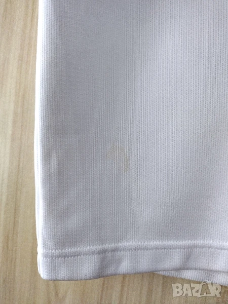 Тениската е добре запазена, има само няколко петна, едно отпред долу и две на гърба(виж последните снимки)
