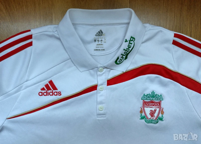 На предната лицева част са избродирани логото на Liverpool и марката на Adidas.