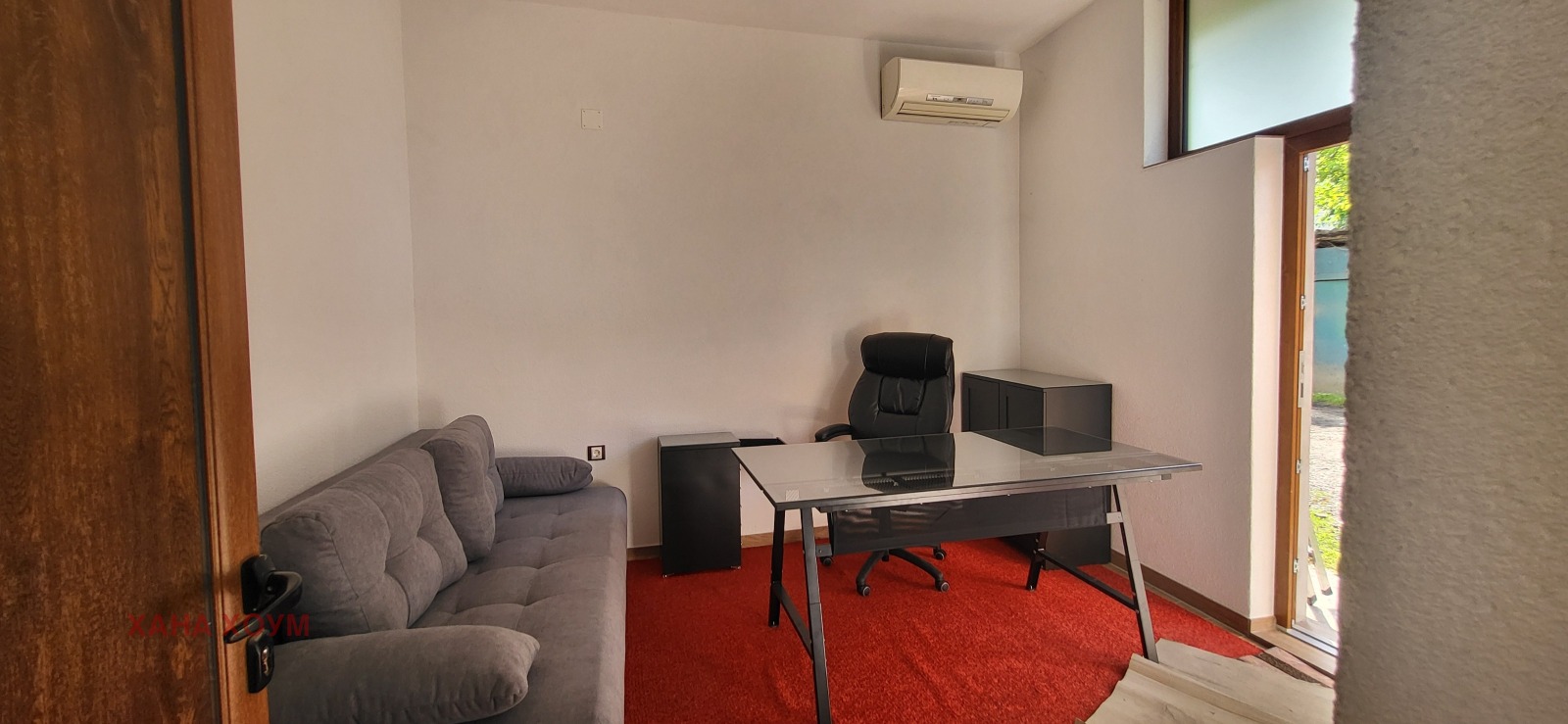 - Обзаведена стая за офис с мека мебел, маса, стол, шкафчета.