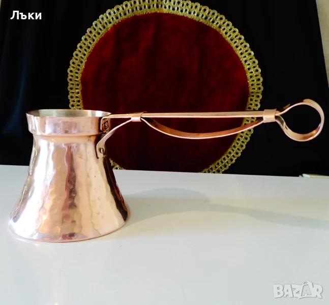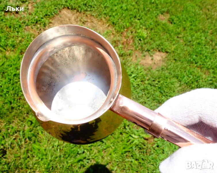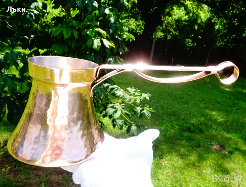 много дълга дръжка,изработена от чиста мед по специален начин за да не гори