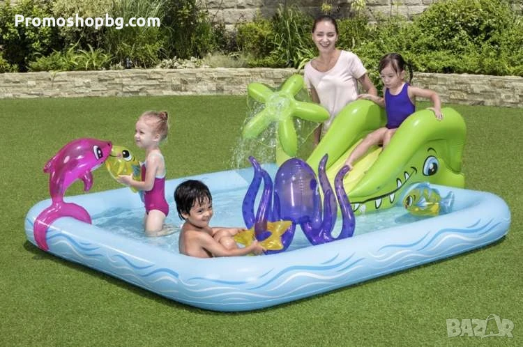 Детски басейн с пързалка Bestway Ocean, 239х206х86 см, Многоцветен