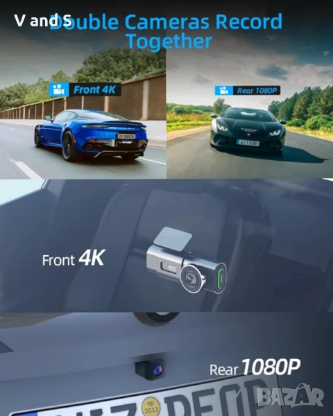 видеорегистратор за кола 4К отпред и отзад, мини WiFi видеорегистратор за кола със супер нощно вижда