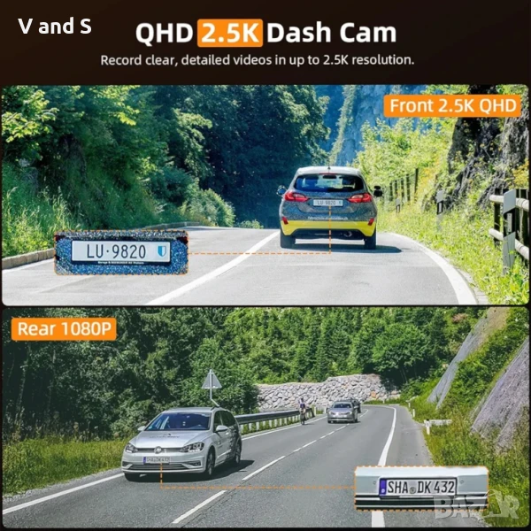 【2.5K HD +1080P ПРЕДНА И ЗАДНА КАМЕРА ЗА АВТОМОБИЛ】 Оборудван с двойна HD видеорегистратор, 2.5K (преден) и 1080P (заден) видео, ясно възстановяващ истината, без място за скриване на инциденти. Видеоклиповете се записват плавно при 30 кадри в секунда. Предният широкоъгълен обектив от 170°, комбиниран със задния ъгъл на видимост от 140°, значително намалява мъртвите зони, като по този начин повишава безопасността и осигурява спокойствие с по-широка перспектива на пътя.