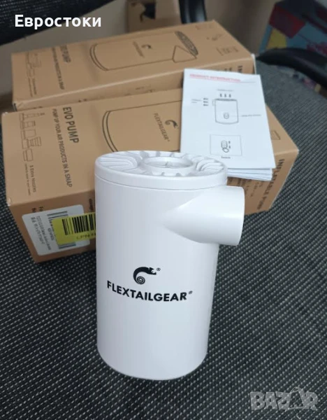 Преносима въздушна помпа FLEXTAIL GEAR EVO, електрическа мини въздушна помпа, вакуумна помпа, 4.5 kPa, акумулаторна батерия 3800mAh, 5 дюзи за надуване, цвят: бяло.