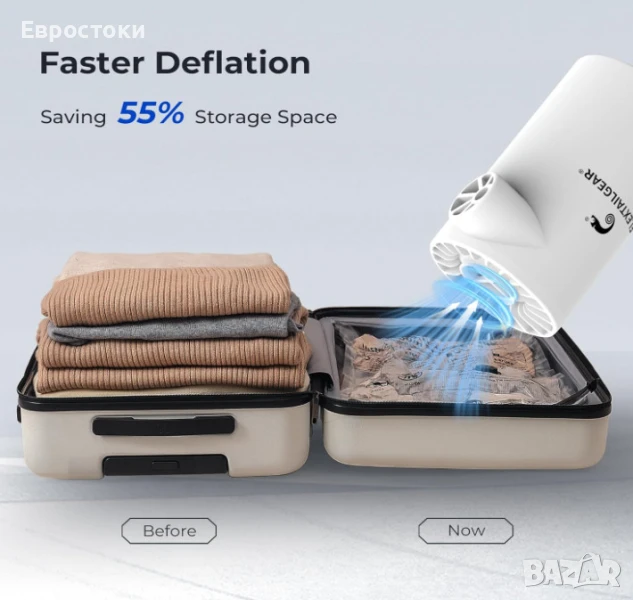 Високо налягане и мощност. Безжичната въздушна помпа постига високо въздушно налягане от 4,5 kPa и дебит от 250 л/мин. Високото налягане позволява бързо надуване/изпускане. Има перфектен надувателен ефект.