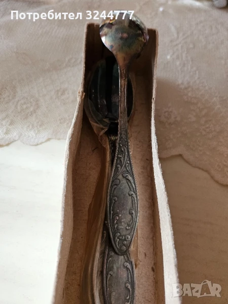 Старинни руски чаени лъжички от 70- те години на миналия век. Имам 3 комплекта по 6 бр. Единият е в подаръчна червена кутия с клеймо на всяка лъжичка МНЦ- струва 60 лв. Другите 2 са в обикновени кутии. Лъжичките във втория комплект са с клеймо 3юммет - струват 54 лв., а в третия имат клеймо МНЦ - също 54 лв. Всички лъжички са с красиви гравирани дръжки и внасят стил при сервиране на масата.
