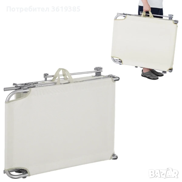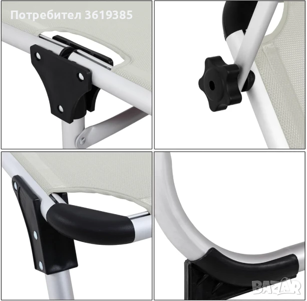 Сгъваемият шезлонг е лесен за транспортиране и се сгъва, за да спести място. Практичните дръжки с покритие от изкуствена кожа го правят лесен и удобен за носене. Здравите панти и подсиленият заключващ механизъм осигуряват стабилност и висока товароносимост от 150 кг.