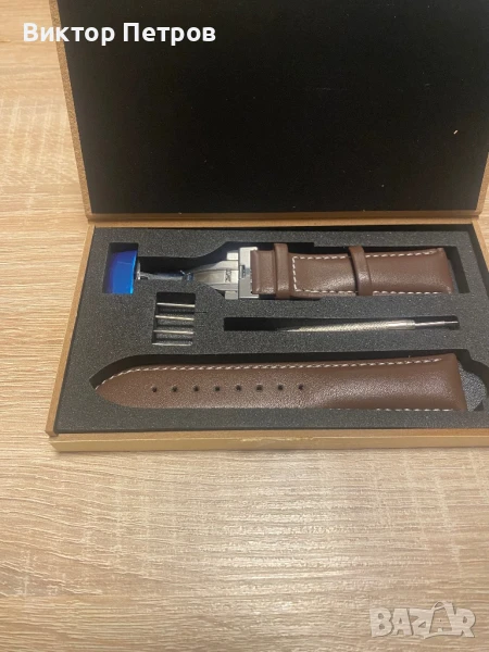 Каишки за часовник от естествена кожа със стоманено закопчаване тип пеперуда в кутия с монтажен комплект . Размери - 20 и 22