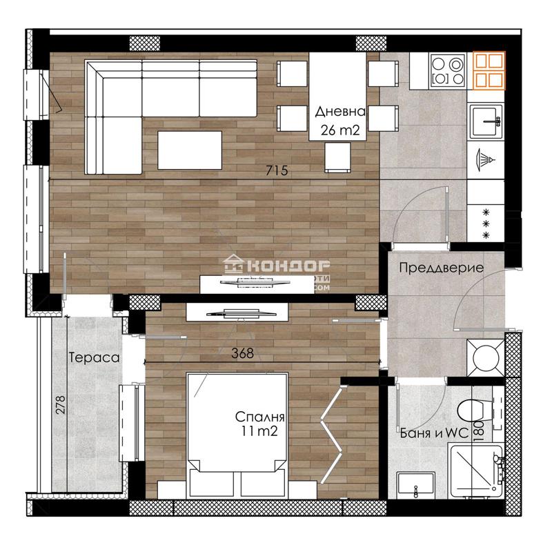 Оферта 57162: Представяме на Вашето внимание един проект на водеща фирма в изграждането на комплекси от затворен тип в град Пловдив. Вече 15 години компанията акцентира върху комфорта, безопасността и сигурността в своите комплекси, естетичното оформление на пространството около сградите и отлично развитата инфраструктура, сред която умело да бъдат съчетавани работа, развлечения, спорт и почивка. Апартаментът, които ви предлагаме е втрешен състои се от дневна - 26 кв.м., самостоятелна спалня, баня с тоалетна, входно антре и една тераса. Най-новият проект на компанията е луксозен комплекс, който е разположен в южната част на град Пловдив, обграден от природа, която дава неподправено усещане за простор и спокойствие, с невероятна гледка към Родопите. Комплексът се базира на концепцията за извънградски комплекс, където в голям терен се разполагат по-малки жилищни единици, къщи и апартаменти, които предлагат спокойствието в покрайнините на града. В сградите има жилища с една, две и три спални, единични и двойни подземни и надземни гаражи, както и външни паркоместа. На входа на всяка сграда е поставена система за индивидуален чип, високоскоростни асансьори, а вътрешнопарковото пространство е решено в богата висока и ниска растителност, заобиколена от живописни зеленина, детска площадка и площ за спорт. Благодарение на ниската си плътност на застрояване, архитектурния си дизайн и добрата ориентация, комплексът е предпочитано място, което осигурява на обитателите си спокоен и качествен живот. Осигурено Банково Финансиране с изключително Изгодни условия за клиенти на Агенцията от Водещи Банки !!!