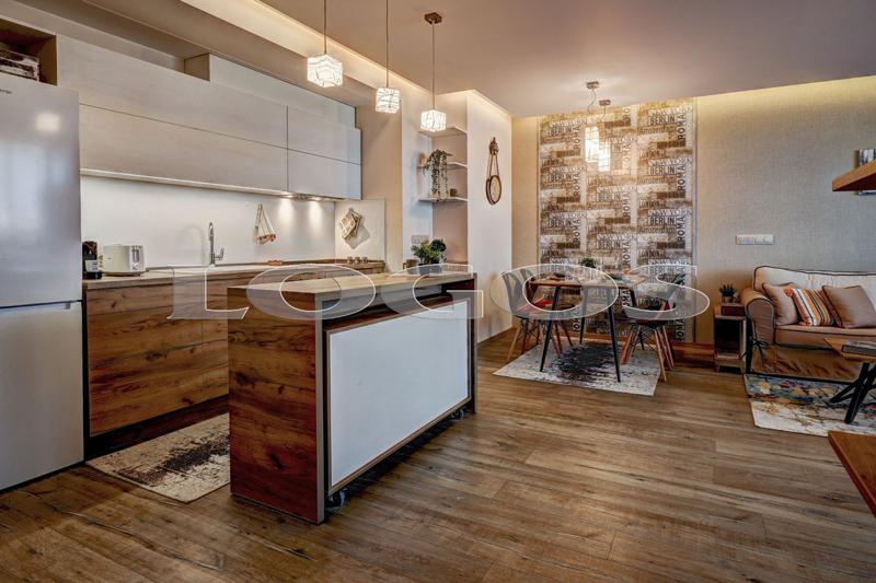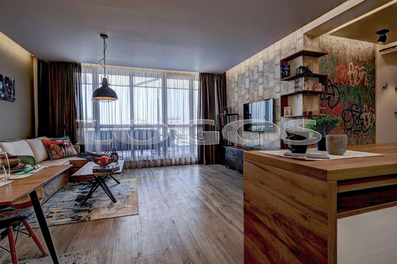 Предлагаме Ви просторен и светъл новообзаведен апартамент в модерен жилищен комплекс VIVA 4. Жилището предлага модерна, комфортна и уютна среда с обща стилова идея, следвана във всички помещения. Акцент са аксесоарите, оригиналните детайли и дизайнерските решения. Апартаментът се състои от дневна зона условно разделена на кътове - оборудвана кухненска част (вградена фурна, керамични котлони, съдомиялна, хладилник с фризерна част), дневна с трапезна маса и холова зона с мека мебел, спалня с удобен дрешник, втора спалня/кабинет, баня с тоалет, втори тоалет и просторна тераса с панорамна гледка, която допълнително засилва възприятието за простор и светлина.