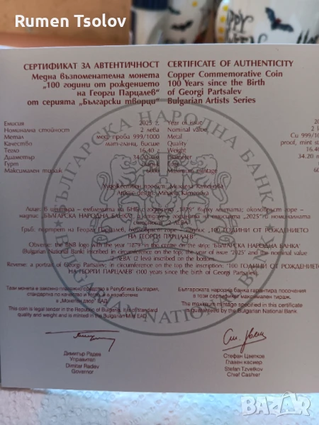 2 лева 2025 година 100 години от Рождението на Георги Парцалев, снимка 1 - Нумизматика и бонистика - 50706652 2 лева 2025 година 100 години от Рождението на Георги Парцалев, снимка 2 - Нумизматика и бонистика - 50706652 2 лева 2025 година 100 години от Рождението на Георги Парцалев, снимка 3 - Нумизматика и бонистика - 50706652 2 лева 2025 година 100 години от Рождението на Георги Парцалев, снимка 4 - Нумизматика и бонистика - 50706652 1/4