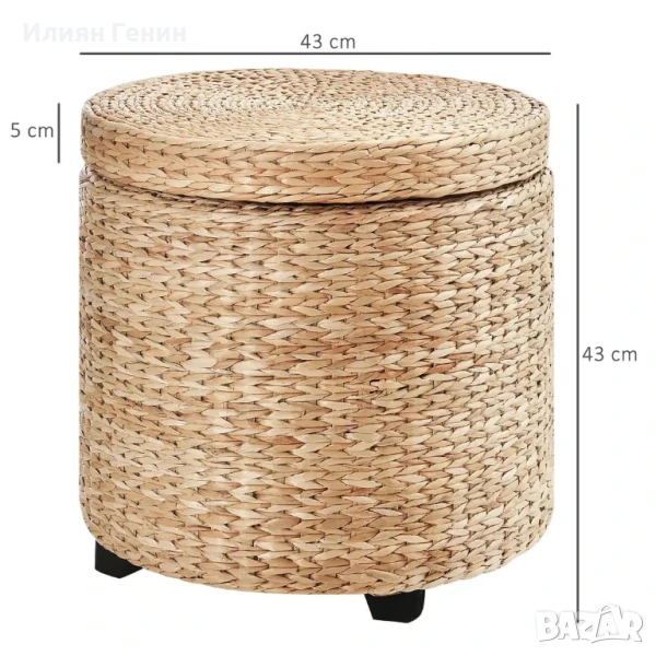 Табуретка за съхранение HOMCOM с капак, кръгла табуретка за крака, 43 x 43 x 43 см - 150.00лв.