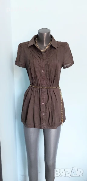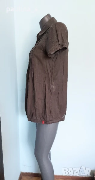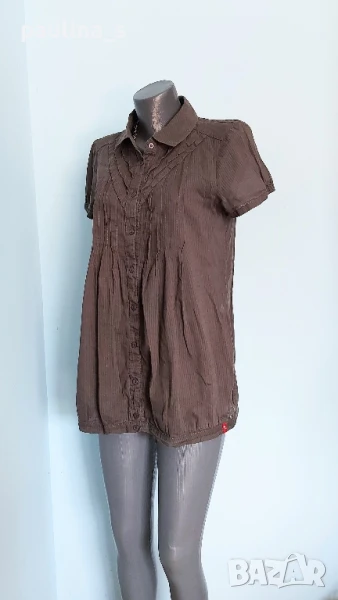 1️⃣. L / XL - "EDC by "Esprit". Цената е крайна 29,99лв. Изключително качествена брандова туника тип риза. Материята е много фин памук с вертикални уплътнени райета и има лека еластичност. Логото на бранда е бродирано на ръкава и маркирано с етикет на долната част. Без дефекти, като нова. Цветът е тъмен шоколад. Коланът се продава в друга моя обява.