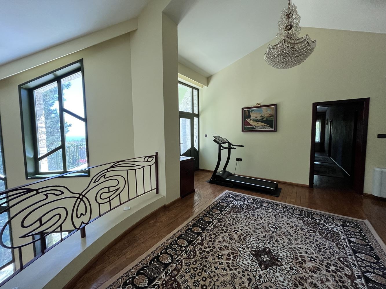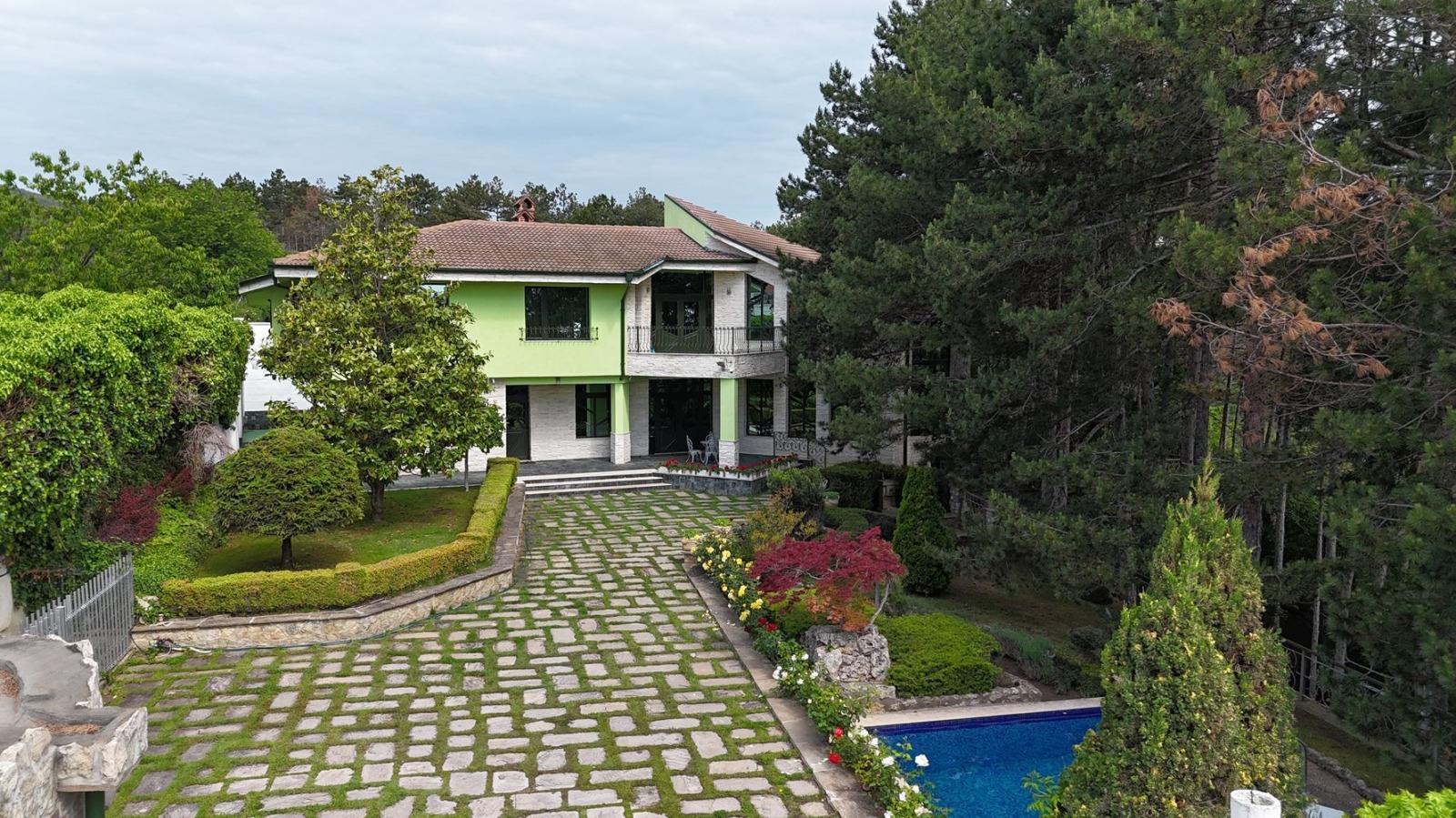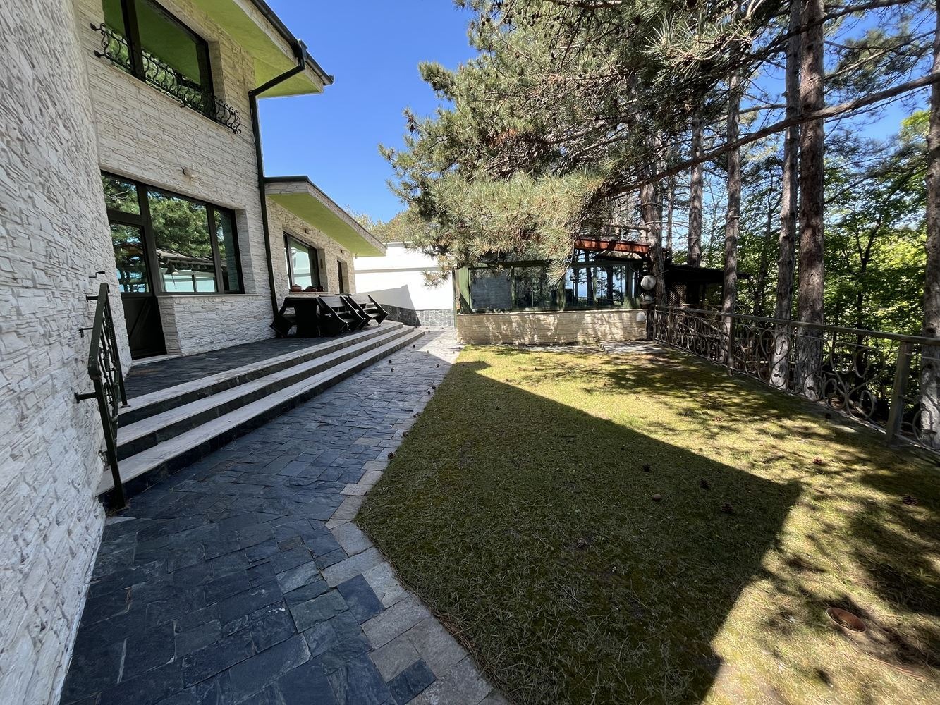 Предлагаме Ви великолепен имот, съчетаващ комфорт, лукс и аристократизъм. Уникално място, което по безупречен начин съчетава удобствата на града и спокойствието на природата. Чудесно аранжиран, дворът ще Ви завладее с уюта и уединението си след забързаното градско ежедневие. Къщата е не просто къща, а дом където пространството диша емпорето, извисяващо се над холовата част, придава усещане за въздух, светлина и свобода. Върху площ от 442 кв.м. са разположени : огромна всекидневна с различни кътове, кухня, 4 спални, 1 кабинет, 3 санитарни помещения, 2 гардеробни, 1 сервизно помещение, 1 перално помещение комбинирано и като стая за гладене, удобно вътрешно стълбище, просторни коридори, голяма тераса с разкошна морска панорама и механа. Имотът е изпълнен само с естествени материали /камък, дърво и ковано желязо/ дограмата е дървена с двоен стъклопакет, като при добра поддръжка на практика животът им е неограничен, подовите настилки са естествен паркет, вратите са от дърво. Отоплението и охлаждането се осъществява чрез Lennox-Hydro Control, което е най-интелигентното решение за хидравлични системи. То управлява и координира производството на охлаждане и отопление /чилъри-термопомпи/, чрез вентилаторни конвектори. За по-голям уют има действаща камина с въздуховоди, която може да изпълни с топлина къщата и душата Ви през зимните дни и още, и още .което ще видите на място.