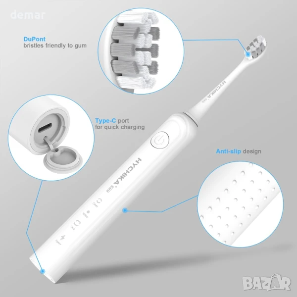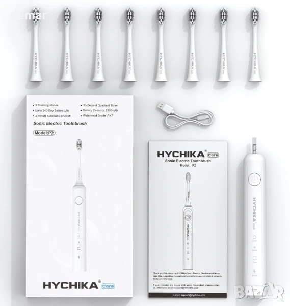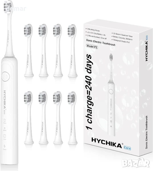 Електрическа четка за зъби HYCHIKA с 8 глави, 3 режима на почистване, IPX7