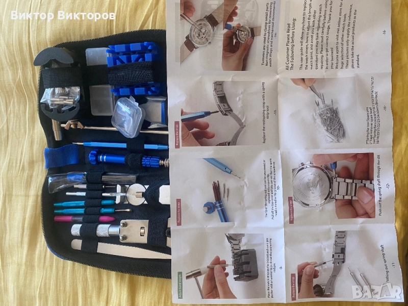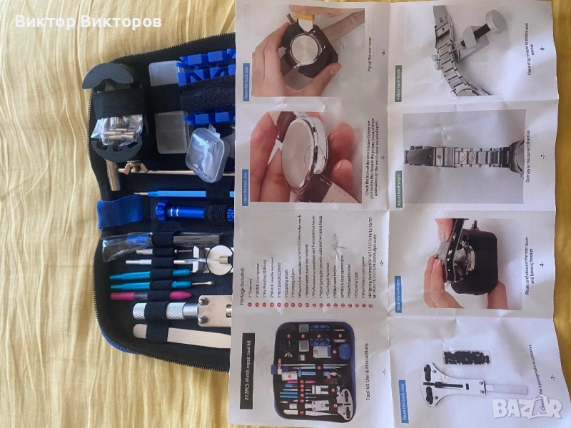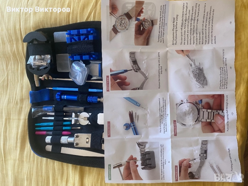 При наличието във Вашия дом на този сет професионални инструменти , Вие ще си спестите време в търсене на майстор - часовникар , на който да се доверите , да му оставите Вашия часовник за банален ремонт по смяна на батерия , скъсяване , удължаване , или смяна на верижка , почистване и други дейности .