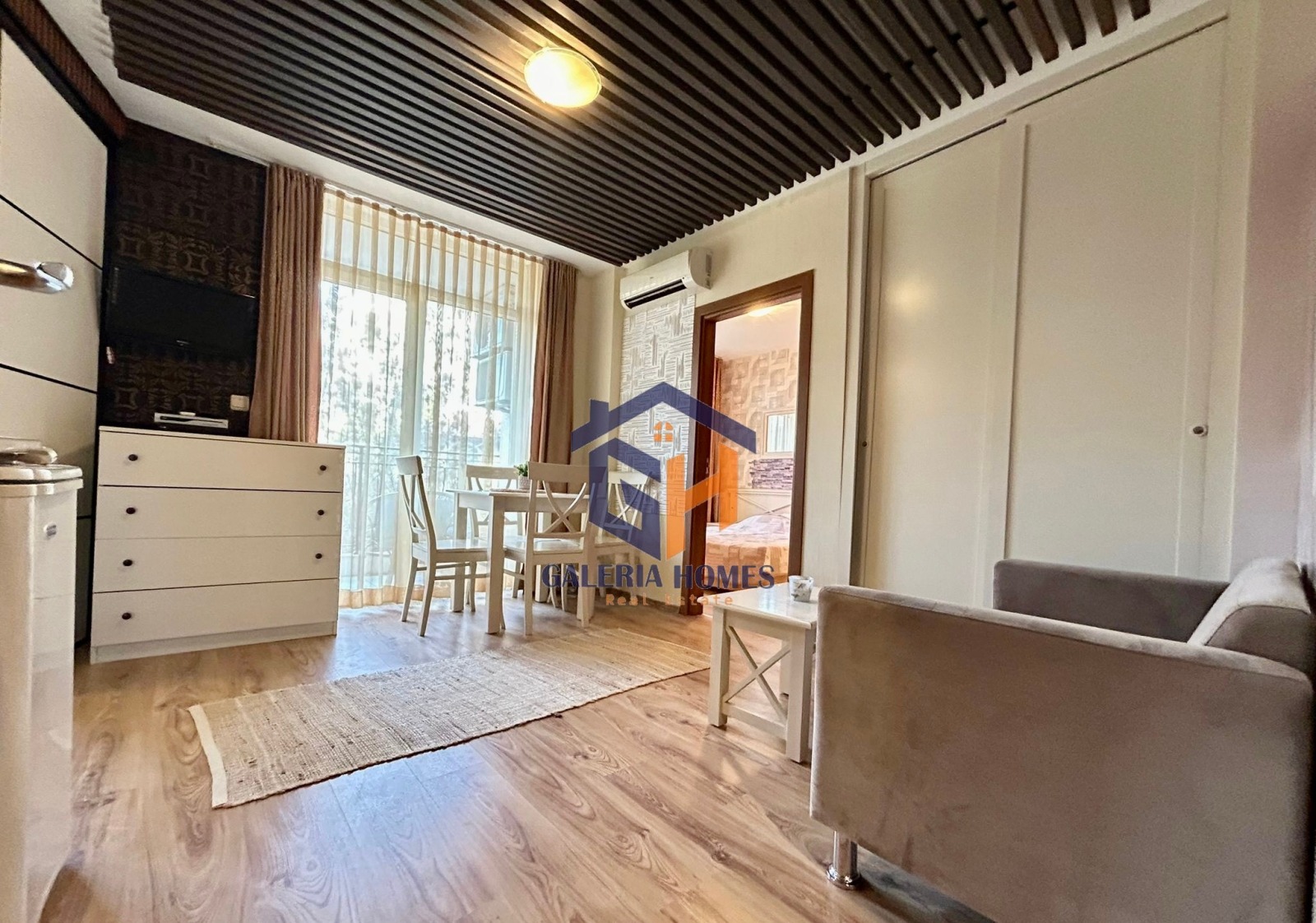 Галерия Имоти Ви предлага за продажба тристаен обзаведен апартамент с Подарък Мерцедес А-класа в к-с Даун Парк, Слънчев Бряг. Комплексът се намира на 700 метра от морето. На пешеходно разстояние е до магазини, супермаркети, кафенета и ресторанти.