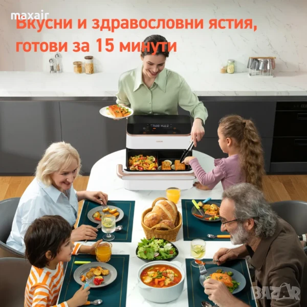 - Синхронизирано приключване: Използвайте отделни настройки за различните ястия и завършете готвенето по едно и също време.