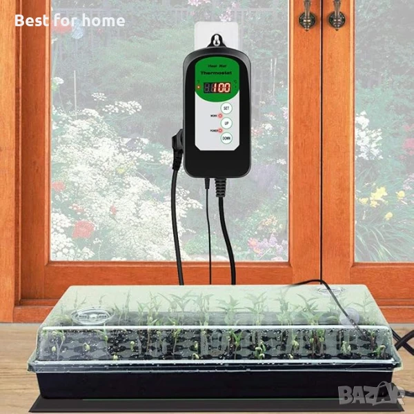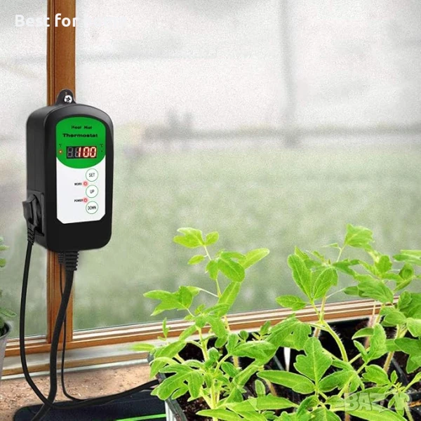 Цифровият термостат за нагревателна постелка позволява на градинарите да избират и поддържат оптимална температура на корените за по-бърза сеитба или косене. Съвместим е с много други нагревателни постелки.