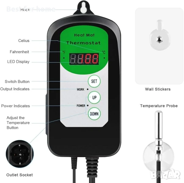 Нашият термостатен контролер може да се използва за нагревателни подложки за влечуги, покълване на разсад, вкореняване, варене, нагряване, ферментация и други, като гарантира, че различните ви среди остават в идеалния температурен диапазон.