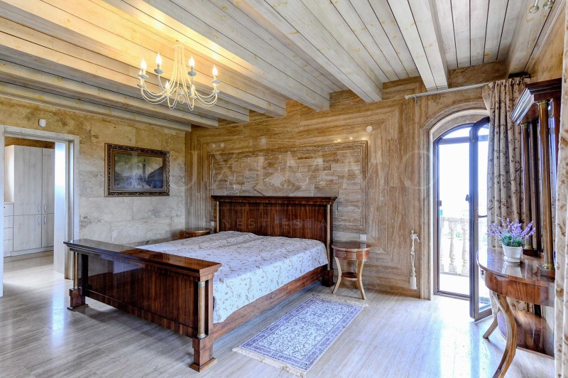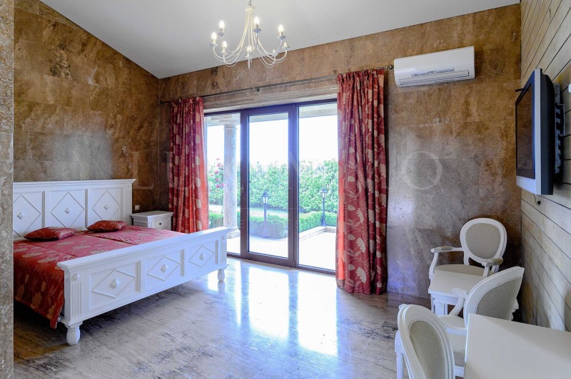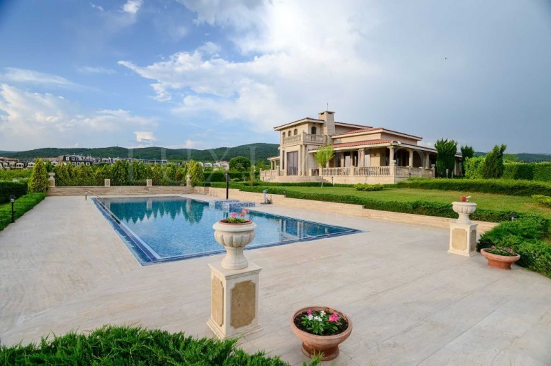 Разкошната къща, която Ви представяме, е разположена в екологично чист район, на минути път от пясъчните плажове на популярния курорт Слънчев бряг. Вилната зона предлага спокойно, автономно обитаване, с благоприятна среда със съчетание на морски и планински въздух. Имотът има изключителна гледка към морето, курорта и хълмовете на Стара планина.