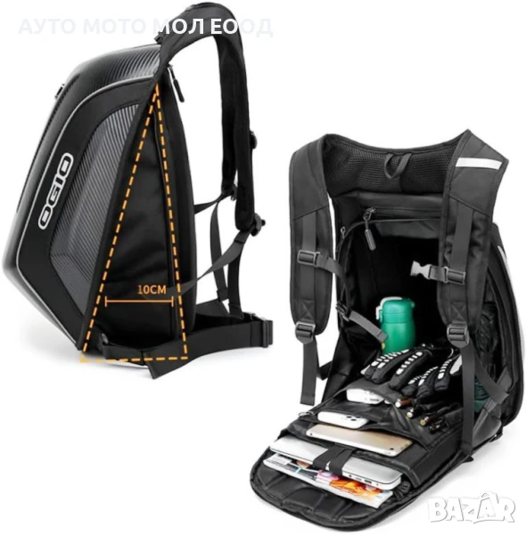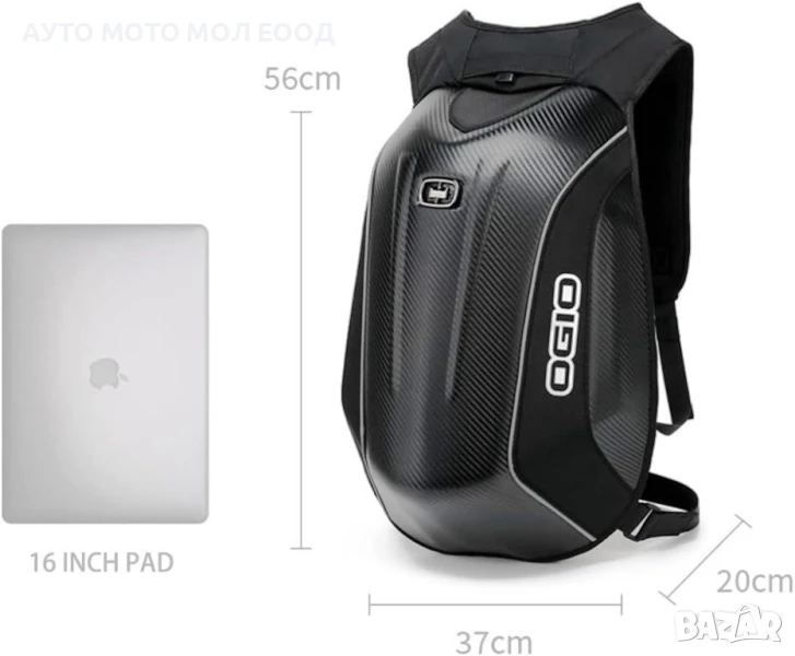 Луксозна водоустойчива мото раница OGIO Carbon/Textile - от последно поколение с всички екстри с дъждобран.